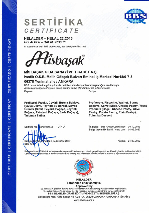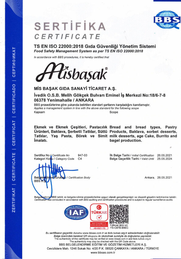 Within the framework of these activities, we, MİSBAŞAK A.Ş, proudly present our international quality certificates to our valued guests.
